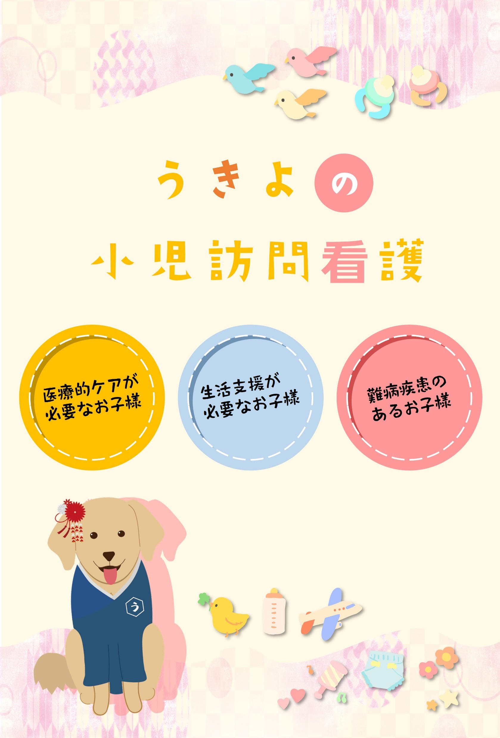 うきよホームページの公式lineもしくはお電話からお気軽にご相談ください。大まかなお住まい、お子様の状況、希望されている看護内容などをお教えください。